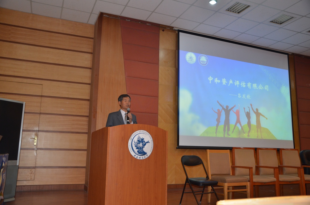 繼“北京注冊會(huì )計師 資產(chǎn)評估行業(yè)2017校園推介—北京大學(xué)專(zhuān)場(chǎng)”之后,北京注冊會(huì )計師協(xié)會(huì )、北京資產(chǎn)評估協(xié)會(huì )于2016年10月13日下午在中央財經(jīng)大學(xué)學(xué)術(shù)報告廳舉辦了“北京注冊會(huì )計師 資產(chǎn)評估行業(yè)2017校園推介—中央財經(jīng)大學(xué)評估專(zhuān)場(chǎng)”推介活動(dòng)。本次宣講會(huì )以資產(chǎn)評估行業(yè)為主題,中和資產(chǎn)評估有限公司副董事長(cháng)呂發(fā)欽先生參加活動(dòng)并作主旨發(fā)言。