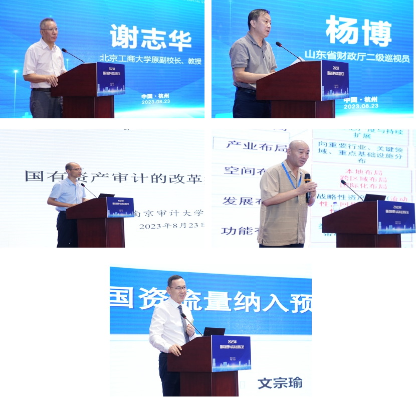 北京工商大學(xué)原副校長(cháng)謝志華教授、山東省財政廳二級巡視員楊博、南京審計大學(xué)副校長(cháng)陳駿教授、華彩咨詢(xún)白萬(wàn)綱董事和中國財政科學(xué)研究院文宗瑜研究員分別從國有資產(chǎn)治理和管理、國有資產(chǎn)財會(huì )監督、國有資產(chǎn)審計監督、國有資本授權經(jīng)營(yíng)改革和國資流量補充政府預算等方面做了主題發(fā)言。