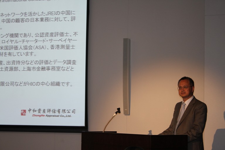 王誠軍先生在日期間拜訪(fǎng)了日方合作伙伴——日本不動(dòng)產(chǎn)研究所(JREI),與該所五十嵐健之會(huì )長(cháng)、福田進(jìn)理事長(cháng)等就評估及咨詢(xún)業(yè)務(wù)合作進(jìn)行了會(huì )談。會(huì )談之后,王誠軍先生出席了日本不動(dòng)產(chǎn)研究所舉辦的研討會(huì ),向100多名來(lái)自日本各大公司的代表作了《日本企業(yè)在中國相關(guān)資產(chǎn)評估討論》的主題演講。日本不動(dòng)產(chǎn)研究所是日本最大的專(zhuān)業(yè)評估機構之一,在日本及國際評估界享有盛譽(yù),其會(huì )長(cháng)、理事長(cháng)均由日本政府前任高官擔任,與中和資產(chǎn)評估有限公司保持著(zhù)良好的合作關(guān)系。