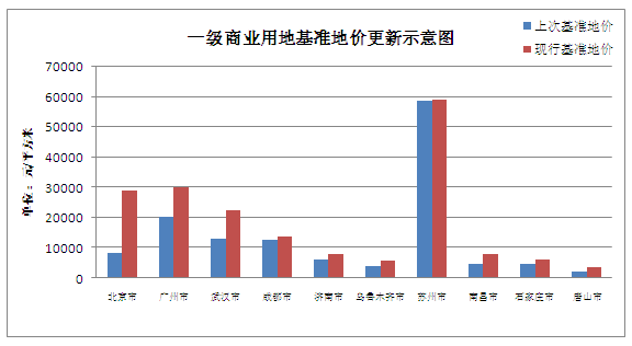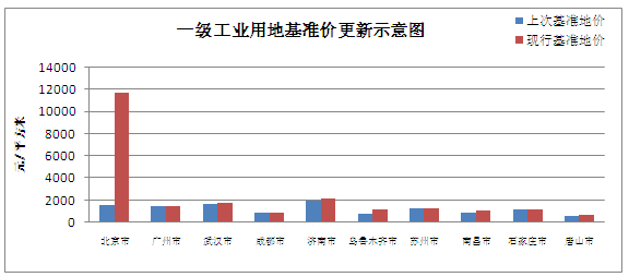 今年8月28日,北京市公布了最新的基準地價(jià),此版基準地價(jià)與2002年版相比上調幅度較大,商業(yè)一級地平均上調253.54%、住宅一級地平均上調389.27%、工業(yè)一級地平均上調673.33%。隨著(zhù)北京基準地價(jià)的調整,山東省,江西省、廣東省等多地也陸續公布了新基準地價(jià)。