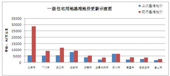 基準地價(jià)反映國有土地使用權價(jià)格的水平和變化趨勢,是國有土地出讓、征稅的依據,也是國有土地使用權評估的基礎?;鶞实貎r(jià)應當隨著(zhù)我國土地利用和管理形勢的變化、價(jià)格的發(fā)展趨勢,適時(shí)更新。隨著(zhù)近年來(lái)我國房地產(chǎn)行業(yè)的迅速發(fā)展,地價(jià)水平的變化也成為大家關(guān)注的焦點(diǎn),我們選取部分一、二線(xiàn)城市,分析其基準地價(jià)的更新幅度、更新頻率,以求“略窺一斑”。